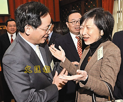 ■葉國謙與羅范椒芬在人代參選者論壇上相逢。資料圖片