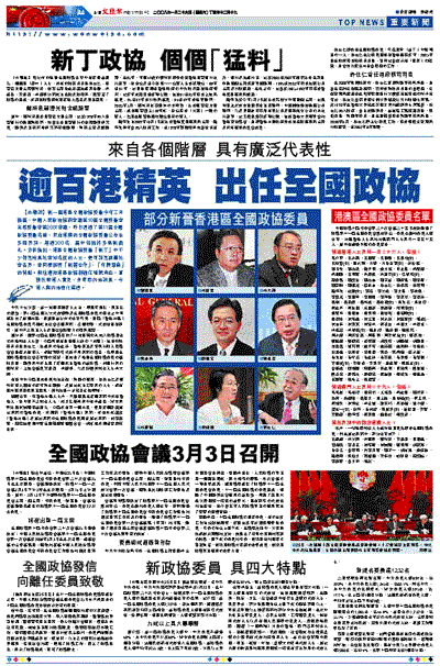 中共十七大後,新一批國家領導人上台,體現年輕化、專業化的趨勢,第11屆全國人大代表選舉及全國政協委員的提名之中同樣反映了這個特點。根據最新公布的名單可見,是屆「香港特邀」全國政協委員可謂來自社會各個界別、各個階層,代表性極為廣泛,其中不乏專業人士及具社會影響力的商界翹楚。