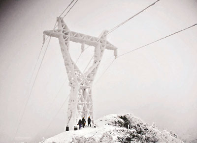 ■重慶電網遭受嚴重覆冰災害。 新華社