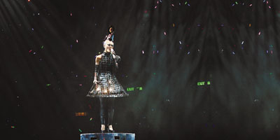 【本報訊】昨晚香港歌迷十分忙碌,張學友、容祖兒同日開騷,祖兒比較幸運不用淋雨。祖兒的十場演唱會昨晚於紅館揭開序幕,昨日傍晚身穿紅色外套加杏色頸巾,戴上黑超的祖兒,蹦蹦跳跳地與霍汶希、吳雨及張耀榮等在紅館後台進行拜神儀式。拜神上香拜四方時,吳雨及張耀榮剛好站在祖兒右手邊,見祖兒朝兩人的方向拜拜時,兩人嚇得即時彈開,十分搞笑。切燒豬時,祖兒更拿起刀劈豬兩下,然後餵身邊的吳雨及張耀榮食豬皮。自己為極探N沒有進食,只拿了兩個生果。雖然下馦茷B,但仍有大批fans在場等她,祖兒友善地向在場fans打招呼,然後返回場館準備。