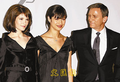 占士邦丹尼爾基克日前獲得兩美相伴,包括新一代邦女郎烏克蘭名模Olga Kurylenko及在戲內飾演探員的英國21歲女演員Gemma Arterton出席新一套占士邦電影名稱公佈活動,之前稱為《Bond 22》預計於11月上映的新一套占士邦電影,正式命名為 《Quantum of Solace》;而監製Michael G.Wilson表示,今次電影是取材於《占士邦》原創者Ian Fleming1960的作品《For Your Eyes Only》。另外,新戲將會比之前的動作場面多一倍,而且戲中角色亦會更人性化,有更多內心戲。 ■文:龜子/圖:美聯社