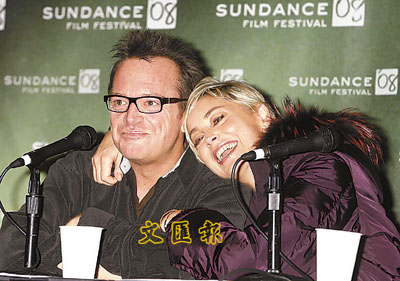荷里活巨星莎朗史東日前聯同拍檔湯阿諾(左),出席於日舞影展舉行的新戲《The Year of Getting To Know Us》記者招待會。而一向都十分友善的莎姐,當日亦心情大靚,除了展示四萬口笑容及招牌「V」字手勢外,時而與湯阿諾攬頭攬頸拍照,時而俯身向前讓傳媒拍照,可謂是傳媒的最佳模特兒。 ■文:龜子/圖:路透社