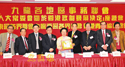 【本報訊】(記者 潘曉平) 就全國人大常委會2007年12月29日關於香港政制發展的決定,九龍各地區事務聯會日前假旺角倫敦大酒樓舉行一場專題講座,邀請港區人大代表譚惠珠大律師作專場演講,與會者都歡迎人大常委會就香港政制民主化定下清晰時間表。