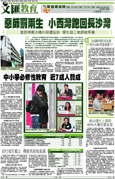 【本報訊】近年體罰雖已幾乎於香港校園絕跡,但老師對學生要求過高,往往不經意使出過火教學手段,傷害學生而不自知。於學界擅長訓練長跑好手的長沙灣天主教英文中學,近日爆出體育科老師以暴力粗言對待學生的醜聞,如施以水樽打頭等,令學生當眾受辱,更罔顧學生安全,為「提升學生意志力」,懲罰缺席練習者由小西灣跑到北角,再過海跑回學校。有關學生終因跑上行人止步的東區走廊被帶返警署,可幸未有釀成意外。校方回應指已就事件向學生家長道歉,校董會亦將討論如何紀律處分有關老師。