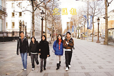 ■林朗行(中)和同學到巴黎一遊,感受那自由散漫的氣氛。