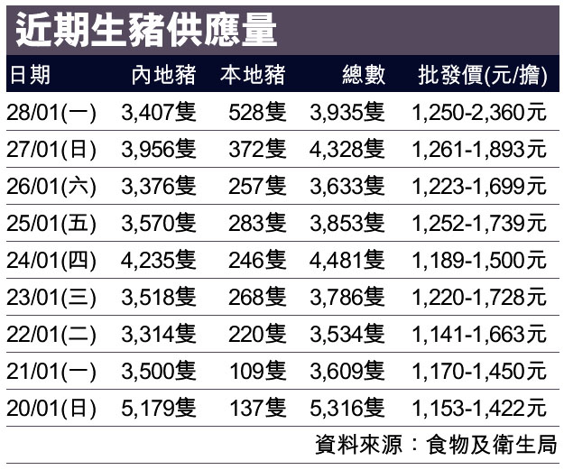 近期生豬供應量 (圖)