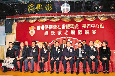 【本報訊】(記者 鄭群)為表達對長者的關懷及敬重,香港路德會社會服務處日前假紅磡漁人碼頭海逸皇宮大酒樓舉行「歲晚敬老聯歡晚宴」,免費招待逾千名長者。敬老晚宴獲一眾善長鼎力贊助善款,當晚筵開108席,場面盛大,喜氣洋洋,入場長者均獲派大利是及禮物包。