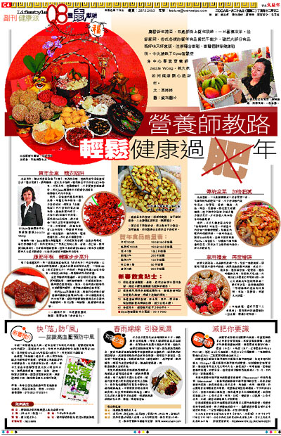 農曆新年將至,四處都掛上賀年裝飾,一片喜氣洋洋。佳節當前,各式各樣的賀年食品當然不能少,雖然大部分食品既好味又好意頭,但卻隱含高脂、高膽固醇等健康陷阱。今次請教了Elyze智慧塑身中心專業營養師Jessie Wong,教大家如何健康開心過新年。