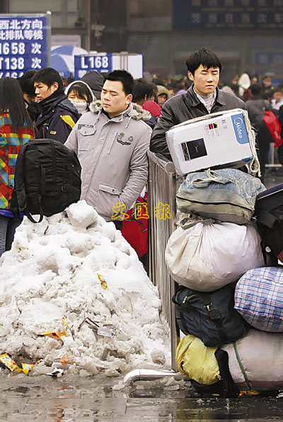 《中國青年報》昨日亦發表文章指出,此次嚴重的冰雪災害和空前的交通險情,最主要的原因當然是罕見的惡劣天氣,但也確實暴露出了各地政府及交通部門工作中的問題,比如管理不到位、應急機制不完善等。文章指出,每年的臘月下旬都是春運的高峰,各路人流可能都還在向車站、機場、碼頭聚集。如不採取非常措施,有些地方(如廣州火車站)可能突破可承載的極限。緊急情況下,動員大家「今年過年不回家」,應該是一種積極有效的措施。