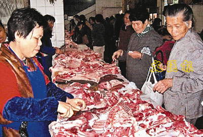 ■春節將至,海南省全力保障市場供應、穩定市場價格。圖為市民在海口市龍華菜市場購買豬肉。新華社