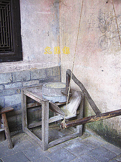 ■屋內仍保留著百年前的石磨。