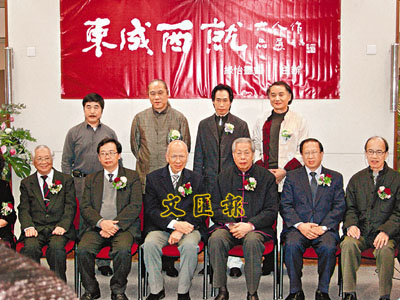 ■「東成西就」作品展上,嘉賓與6位藝術家合照。