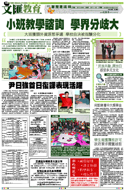教評會主席蔡國光則指,小班教學應由小一起全面推行,學校條件許可下亦可同時於其他級別推行小班。