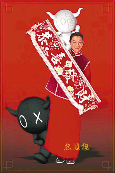 「我在此預祝世界上的每一個人,都能健康、開心,演藝圈也能夠愈來愈蓬勃!」劉德華每年都會拍一些應景照片製作成利是封,供華仔天地會員購買、蒐藏,今年讓兩個「兒子」Adnox、黑仔作為紅包的主角。