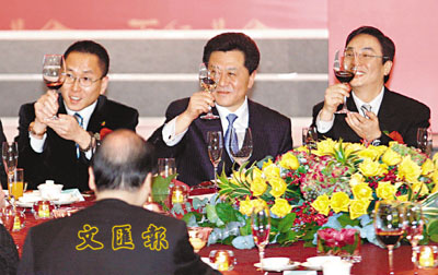 ■李剛(中)在百仁基金成立典禮上敬酒。本報記者潘政祁 攝