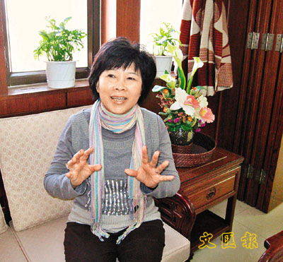 ■馮翠屏會長笑談購置會所十大條件。本報記者鄭群 攝