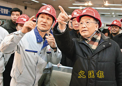 上午9點:湘潭電廠 今日一早,溫總從長沙出發,直奔湘潭,上午9時就抵達湘潭發電公司。由於接連冰凍,該公司600兆機組4天內7起7停,兩次全廠停電。