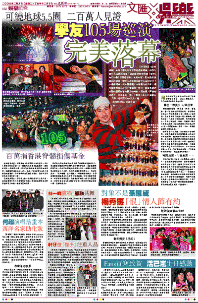 尾場天星娛樂更捐出100萬元給「香港脊髓損傷基金」,將善心發揚光大,令學友與歌迷留下美好回憶!