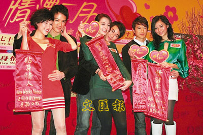 【本報訊】(記者 梁靜儀)楊秀惠、陳茵媺、呂慧儀、黃長興、黃長發及陳智燊昨日出席明珠台於將軍澳某商場舉行的「情濃二月」之「桃花甜蜜情人夢」活動,並由陸詩韻擔任司儀。會上眾藝人一男一女分成三組,除了互餵朱古力外,又擺出親密甫士,十分溫馨。