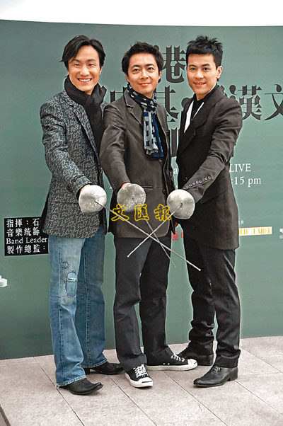 【本報訊】「港樂.鄭中基.梁漢文演唱會」將於3月14至16日舉行三場,昨日兩人與香港管弦樂團的成員出席記者會,又與總指揮石信之齊齊揮動西洋劍,寓意三劍合璧。