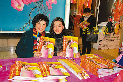 ■衛駿英和陳詠儀在新光戲院,為排隊取特刊的觀眾簽名。