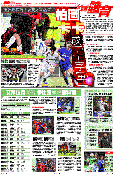 同時,柏圖的AC隊友兼巴西師兄卡卡,雖然據報入選了出戰今夏北京奧運會的大軍名單,卻也因輕傷而在今仗退下火線,他跟柏圖以及拜仁慕尼黑的守將盧斯奧,都退出了周中對愛爾蘭的友賽名單。
