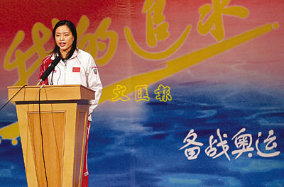 ■跳水隊舉行「我的追求」演講比賽,吳敏霞在演講。 新華社
