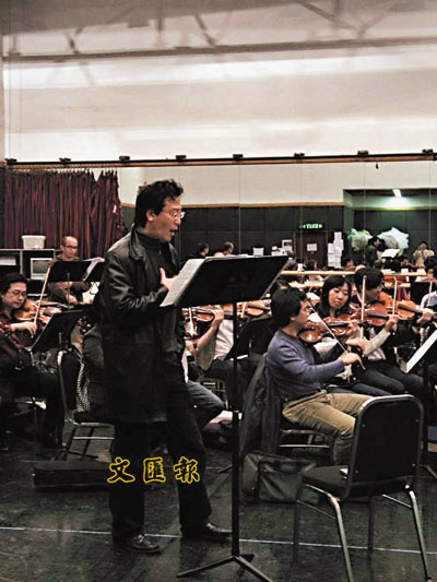 1月23日,來自上海師範大學音樂學院聲樂系的教授周進華,在文化中心排練室內高唱《O Sole Mio》(我的太陽)、《Turandot: Nessun Dorma》(杜蘭朵:今夜無人能睡)等曲,為翌日的演出排練。他的聲音甜美純淨,一開腔便震懾在場的人。