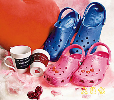 ■Cros的長青系列Beach最容易配搭出情侶裝,加在鞋上釘上心形Jibbitz飾物,一定令女朋友甜在心頭。每對:$268;Jibbitz飾物:$20