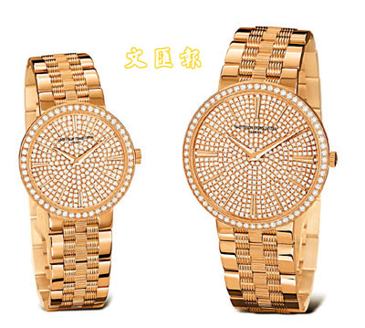 ■江詩丹頓的Patrimony Traditionnelle系列,男裝腕錶採用鑄有Poincon de Geneve日內瓦印記的1400手動上弦機芯,女裝款式則採用了1202石英機芯。男裝腕錶鑲有473顆及64顆圓形切割美鑽,而女裝款式鑲有264顆和50顆圓形切割美鑽。女裝:$295,000(粉紅金);男裝:$387,000(粉紅金)