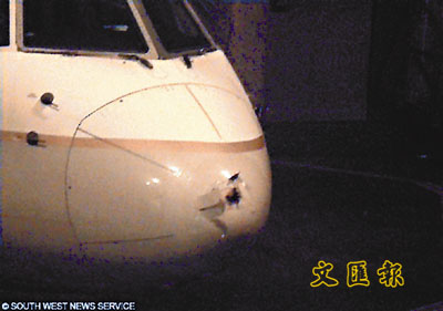 巨爆於起飛5分鐘後發生,機外閃過一道白光,機內發出一下巨響,班巴當時想:「我的天,我們要墜機了。」數分鐘後,機師宣布客機遭閃電擊中要急降,其後不足4分鐘便著陸。二人下機時,發現機頭一個兩呎長裂縫,他們才了解到剛才閃電的威力。 ■《每日郵報》