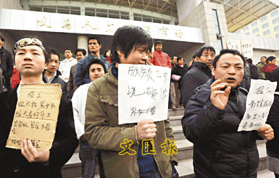 2月12日,在浙江義烏市人力資源市場門口,義烏招工企業在招聘工人。人力市場新春供需兩旺。 新華社
