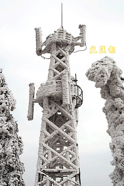 ■11日,貴陽聯通雙流機站鐵塔被厚厚的冰雪覆蓋。當日,貴陽聯通職工冒著呼嘯的寒風,抬著柴油,艱苦地沿著崎嶇山道登上雙流基站,為自備發電機加油。據悉,從1月18日起,因雪凝冷凍天氣造成電桿多處倒塌,開陽縣全縣斷電,基站也因停電中斷信息,貴陽聯通緊急啟用自備的5.5千瓦柴油發電機,保證了全縣信息暢通。 新華社