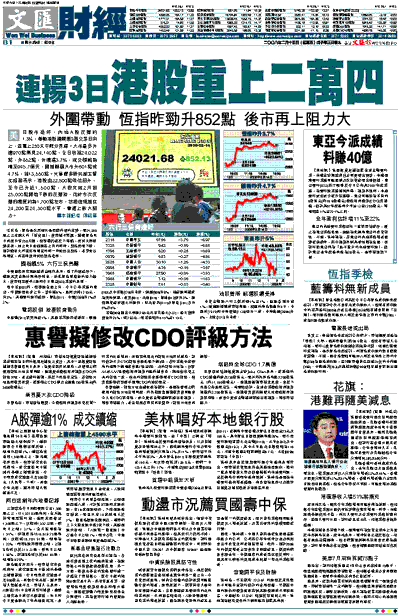 中銀國際研究部副總裁白韌亦表示,除了外圍造好下,港股其實並無特別利好消息,故此恆指現階段的阻力頗大,後市則要視乎A股和今日東亞(023)業績的表現。
