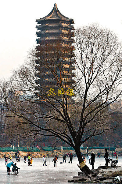 ■光華學院的EMBA項目在內地開創先河。圖為北大校園內的標誌性建築博雅塔和未名湖。資料圖片