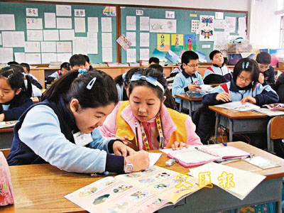 【本報訊】荃灣海壩街官立小學學生早前與5名來自上海的小學生一同學習、交流達2天。該批上海學生參加了由香港新界校長會、上海教育報刊總社合辦的第二屆滬港「寫作小能手」比賽,因成績優異獲邀來港交流。他們早前以交換生身份來港分別居於該校5位港生的家中,港生同時充當臨時嚮導及輔助員,負責帶領上海的同學到處遊玩及到校園上課。