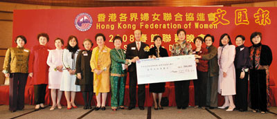 【本報訊】(記者.潘曉平)香港各界婦女聯合協進會日前假座九龍灣國際展貿中心隆重舉行「2008年春節聯歡晚會」。中聯辦副主任郭莉、行政長官夫人曾鮑笑薇、外交部駐港特派員呂新華夫人張靜婭、何鴻燊博士蒞臨主禮。晚會筵開120席,由何鴻燊博士贊助,到場嘉賓和婦協會員多達1,400餘人,氣氛喜慶熱鬧。