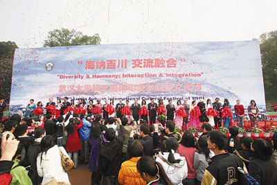 ■武漢大學歷來注重海外交流,圖為第三屆珞珈金秋國際文化節開幕式現場。