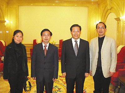 ■中聯辦副主任彭清華(右二)與大冶一中校長黃開福(左二)、副校長曹茂海(右一)合影。