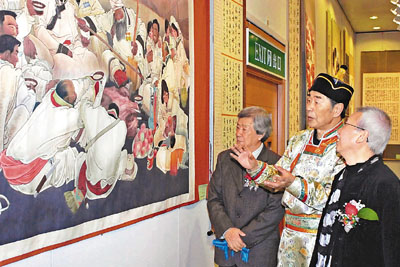 ■身穿民族服裝的劉曉廉副院長向來賓介紹畫作。