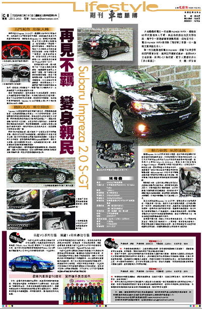 新一代引進香港的富士Impreza,放棄了沿用多年的四門房車外形,起用五門揭背式設計,並把WRX之名收起,改用S-GT為代號,更令人覺得它決心「洗心革面」。
