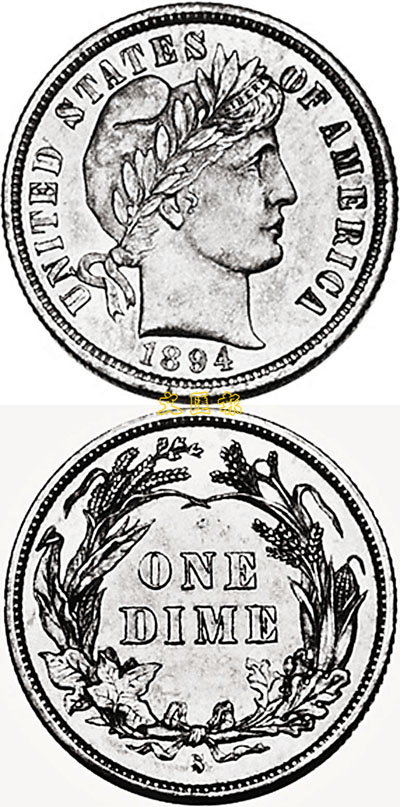 ■1894-S 自由頭像一角硬幣正、背面