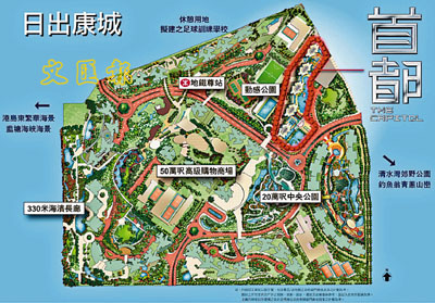 設施:區內設有13公頃綠化空間,包括20萬呎中央公園、50萬呎購物商場、12萬呎豪華園林會所等