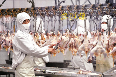 ■ 米利班德呼籲支持北京奧運,理智對待國際輿論壓力。圖為北京最大的雞肉生產線確保北京奧運食品安全。資料圖片