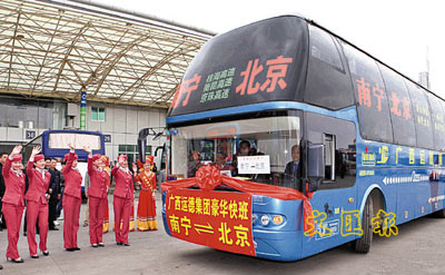 24日,廣西開通首條南寧—北京長途客運班線。該班線全程2,538公里,配備3位司機輪換駕駛,在桂海高速、衡昆高速、京珠高速公路上運行,途經長沙等市,抵達北京六里橋、趙公口和八王墳3個站點,運行時間為28小時左右。 中新社