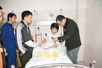 ■深圳比亞迪公司一名中毒員工向當地衛生防疫人員匯報中毒情況。新華社