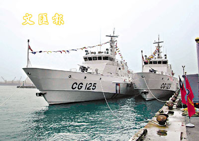 【本報訊】據中通社電:由台灣「行政院」海巡署委托民間造船公司興建的兩艘500噸級巡防艦「金門艦」與「連江艦」,24日上午在高雄旗津碼頭舉行成軍典禮。據稱,主持成軍典禮的陳水扁十分讚賞兩艦的性能,尤其是將推進系統由傳統的螺槳式改為新型噴水式,創下台灣大型艦艇造船的首例。