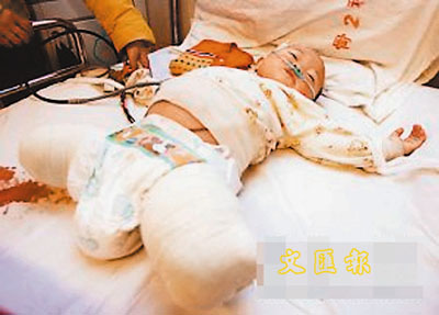 【本報訊】據《重慶晚報》25日消息:昨日上午9時47分,重慶市北碚火車站,一名老翁將手中1歲的女嬰放進一列正在慢駛的載貨火車的車輪下,女嬰的雙腿當場被軋斷。附近巡邏的鐵路民警聽到過路市民的呼救聲後,將老翁抓住。經過民警緊急包紮後,女嬰被送到北碚第九人民醫院搶救。女嬰暫時脫離了危險,但老翁為什麼這樣做,至今還是一個謎。