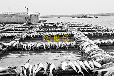 ■受寒潮影響,廣東九成網箱魚凍死。圖為2007年的洪澇災害導致雷州半島大批魚死亡。資料圖片