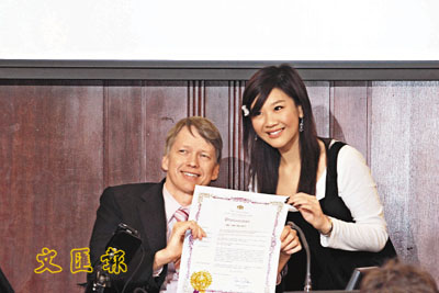 ¡@¡½¨H·µÁø¤k¨à¾GªY©y±q¥«ªøÄ¬§Q¤å¡]Samuel C.Sullivan¡^¤â¤¤±µ¹L¡u¼ú«jª¬¡v¡C ¤¤·sªÀ